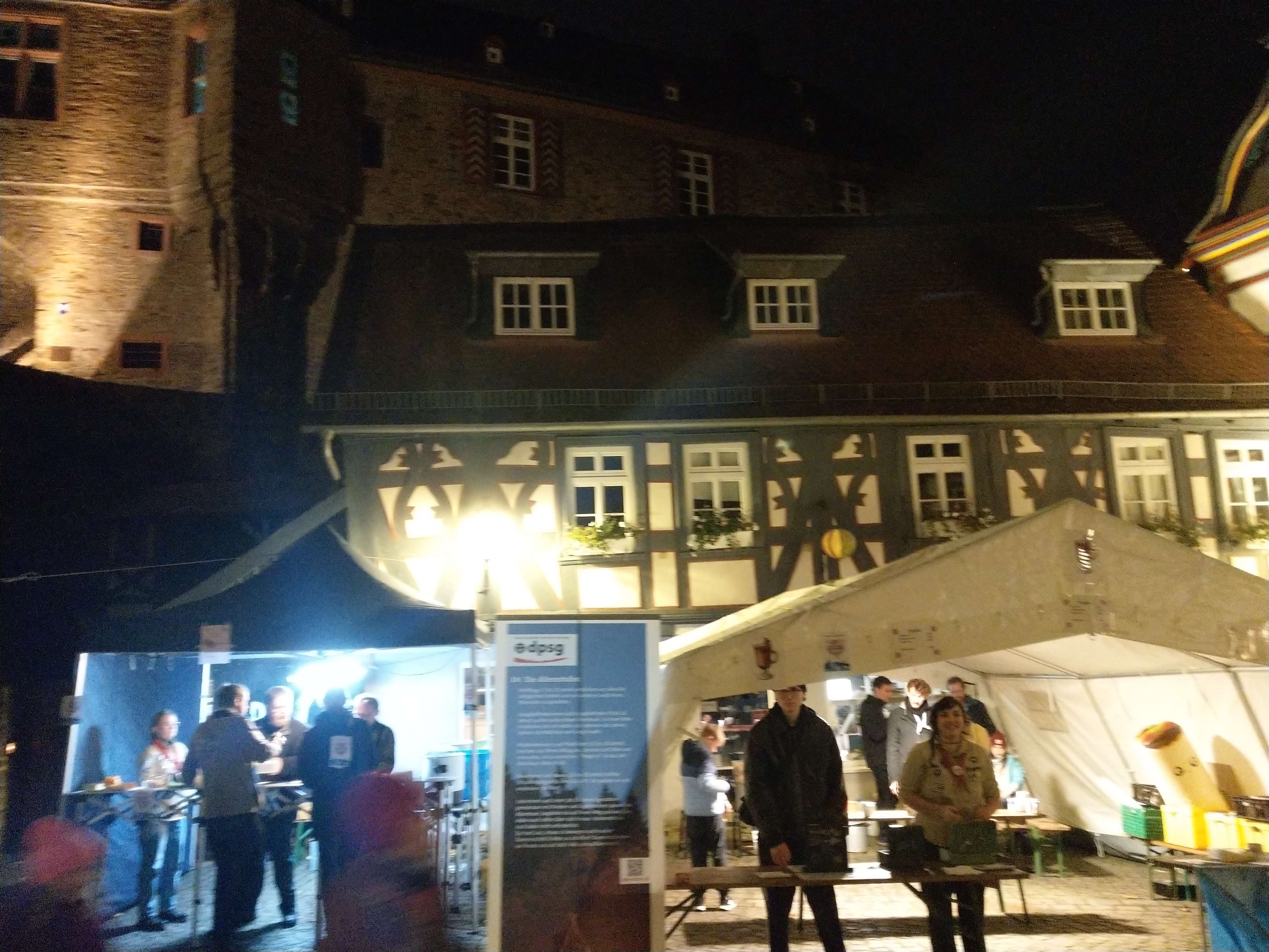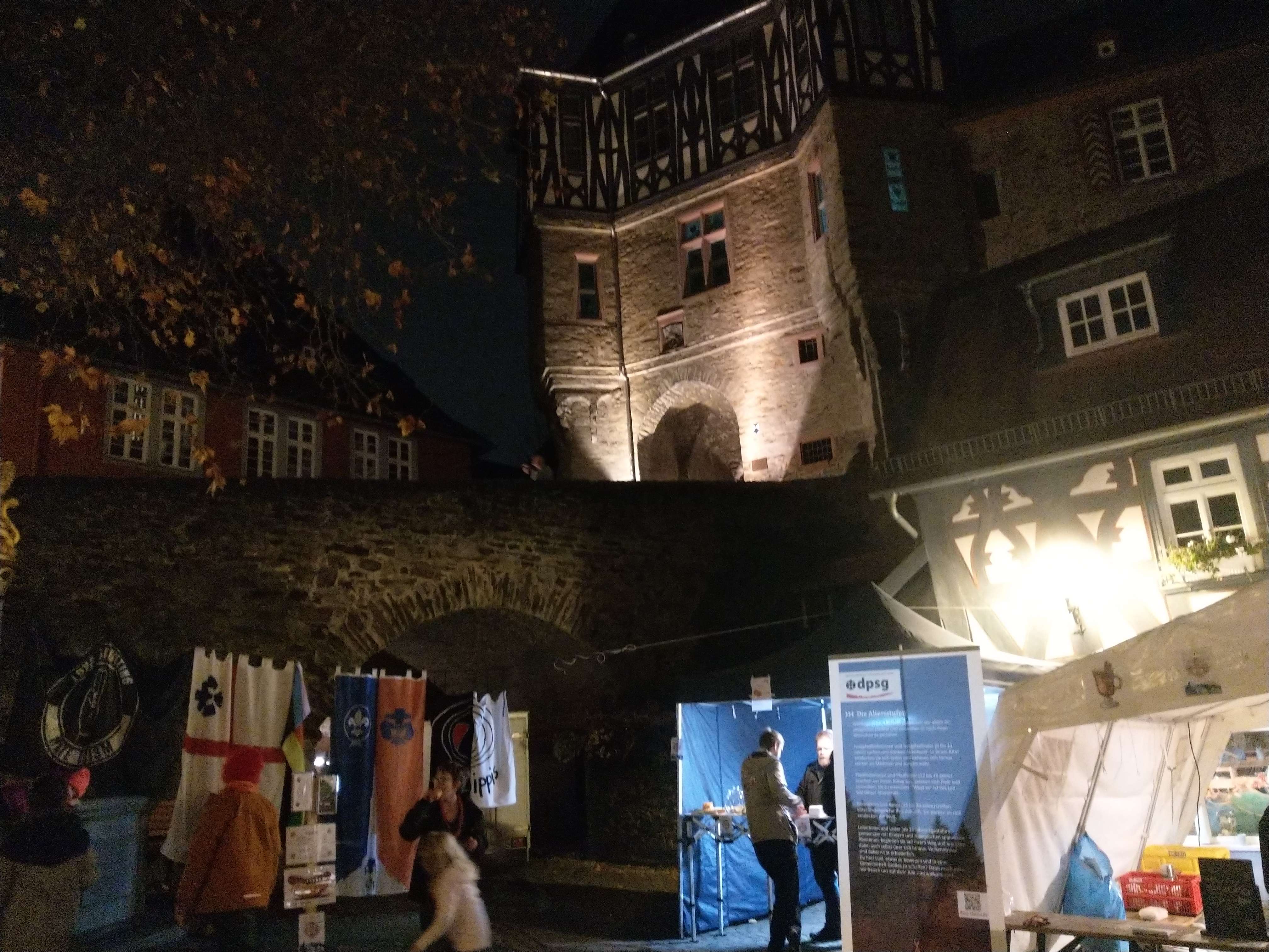 Am 08. November war es wieder soweit: Anlässlich des traditionellen Sankt Martins-Umzugs durch die Altstadt waren die Idsteiner Pfadfinder:innen wieder mit zwei Zelten vor Ort, um heißen Kinderpunsch, Glühwein und Brühwürstchen mit Semmeln zu verkaufen. Auch dieses Mal wurde die Aktion dank vieler helfender Hände aus den Kinder- und Jugendstufen wieder ein voller Erfolg. Unser Förderverein übernahm wie im letzten Jahr wieder den Betrieb des Würstchenverkaufs und unterstützte uns auch bei der Vor- und Nachbereitung tatkräftig. Die Einnahmen aus dem Getränke- und Würstchenverkauf werden in unsere Stammesaktionen im kommenden Jahr und verschiedene Materialanschaffungen fließen. Unsere Roverrunde, die Sippies, verkaufte zudem selbstgebackene Cookies, um die dabei generierten Einnahmen für die Finanzierung ihrer geplanten großen Kanadareise im kommenden Jahr nutzen zu können.